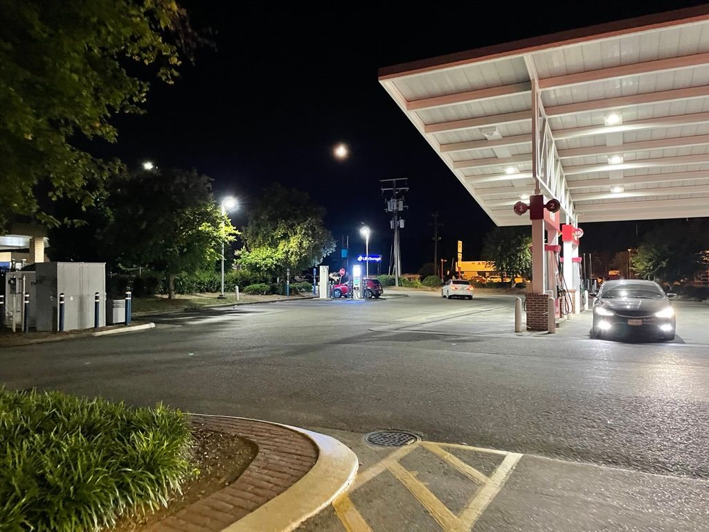 On the way back from Charlottesville, I also charged at a fast charger at a Sheetz off of the interstate. This one had chargers promising up to 300KW (which the Kona can't achieve). Initially, two of the chargers were down for maintenance and I got there just behind two other EV drivers, but by the time we went inside the convenience store for a bathroom break and a snack, the maintenance truck was gone and we were able to charge enough to feel comfortable getting home.